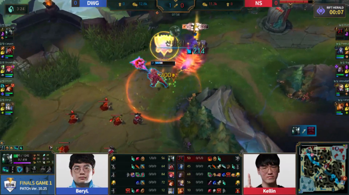 경기 시간 20분 만에 만 골드의 차이를 낸 담원은 두 번째 전령, 네 번째 드래곤, 내셔 남작까지 모든 오브젝트를 독식하며 23:4 스코어로 경기에 승리했다.