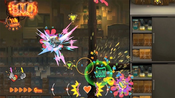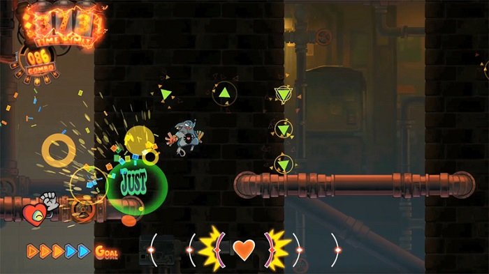 또한, 별도의 체력이 있는 것이 아닌 한 번이라도 공격을 받으면 그 자리에서 사망, 시간을 되돌려 다시 진행하는 방식을 채용해 리듬과 액션 양쪽 모두 숙련되지 않았더라도 언제든지 재도전해가며 진행해 나갈 수 있다.