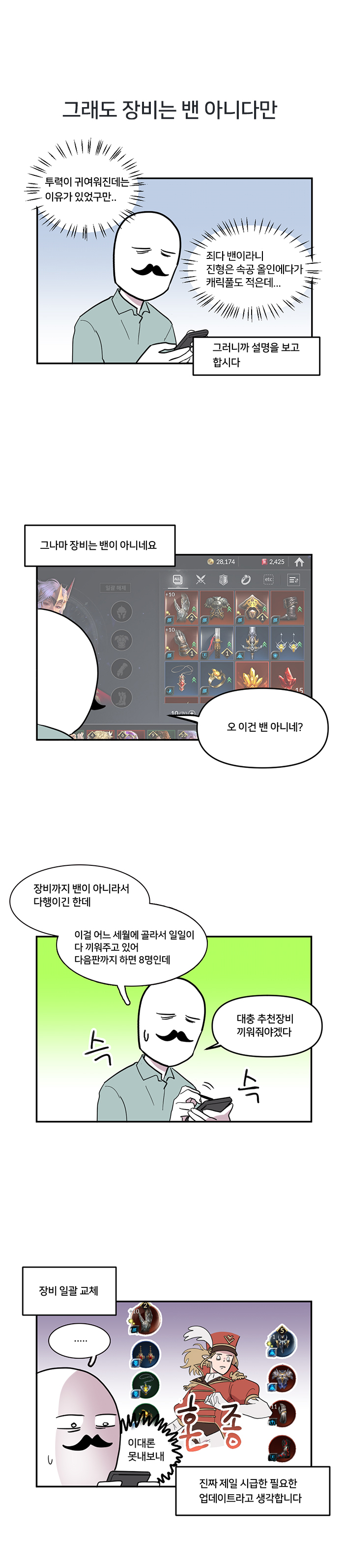 게임조선을 통해 연재하고 있는 국도 작가의 세나2 하는 만화는 국도 작가가 직접 세븐나이츠2를 플레이하며 경험한 내용을 토대로 세브나이츠2 유저라면 누구라도 공감할 수 있는 내용을 작가 특유의 재치로 표현해 주목받고 있다. 이번화에서는 새로 업데이트된 길드전 콘텐츠를 즐겨보고 느낀 점과 업데이트 예정인 장비 스위칭 시스템 등 여러 부분을 꼬집고 있어 실제 플레이어의 애환을 그려냈다.