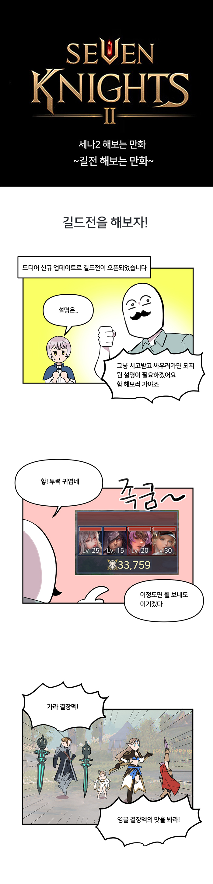 넷마블이 서비스하는 모바일 MMORPG 세븐나이츠2 웹툰 '세나2 하는 만화' 6편 '길드전 하는 만화'가 공개됐다.