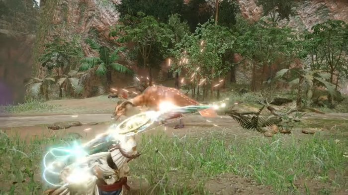활 영상에서 가장 반가웠던 부분은 역시 '한조'로 불리는 '용화살'의 존재였습니다. 몬스터 헌터 월드에 나왔던 이 기술은 비록 시간당 피해량은 다른 기술에 비해 떨어지지만 '멋' 하나만으로 모든 것이 용서되는 기술이었습니다. 물론 다른 파티원들의 혈압은 좀 오르겠지만요.