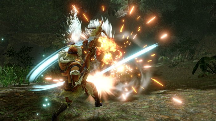 쌍검의 벌레철사 기술은 '으스름뛰기'와 '벌레철사 베기'입니다. 우선 으스름뛰기는 이동 중 공격을 받으면 반격을 가하는 반격 기술입니다. 몬스터 헌터 더블 크로스에 등장한 부시도 스타일의 저스트 회피 반격을 계승한 요소인 듯합니다. 방어와 동시에 공격을 한다는 점에서 "귀인화가 켜졌는데 지금 목숨이 중요하냐!"라며 난무를 이어가는 쌍검 헌터들에게 어울리는 기술이라고 할 수 있겠습니다.