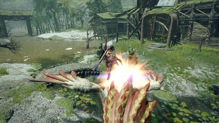 랜스 영상에는 다른 무기 헌터들도 반가울만한 얼굴이 나왔습니다. 바로 몬스터 헌터 월드의 귀염둥이 독요조 푸케푸케입니다. 변함없이 멍청하고 귀여운 얼굴로 혀를 쭉 내빼는 공격을 보여주며 헌터에게 수렵당했습니다.