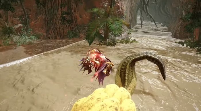반가운 얼굴이 또 등장합니다. 바로 몬스터 헌터 월드의 첫 번째 대형 몬스터 '쿠루루야크'입니다. 이번 영상에는 알 대신 항아리를 소중하게 껴안은 모습으로 등장했습니다.