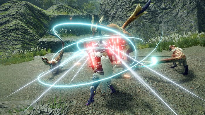 몬스터 헌터 시리즈 최고의 간지 무기를 꼽으라면 역시 '태도'가 빠질 수 없죠. 파티원들에겐 '민폐 대회전베기'라고 불릴 때도 있지만, 멋 하나만은 그 어떤 무기도 따라올 수 없는 '기인 대회전베기', 몬스터의 머리를 내리찍는 '투구 깨기', 공격과 회피, 멋까지 동시에 챙긴 '앉아발도 기인베기'까지 이 모든 기술을 라이즈에서도 만나볼 수 있습니다. 이렇게 수많은 기술이 추가된 태도는 체험판이 등장한 현재 최강 무기로 군림하고 있습니다.