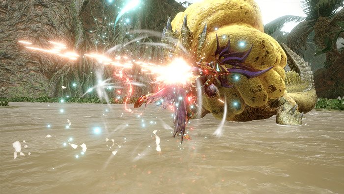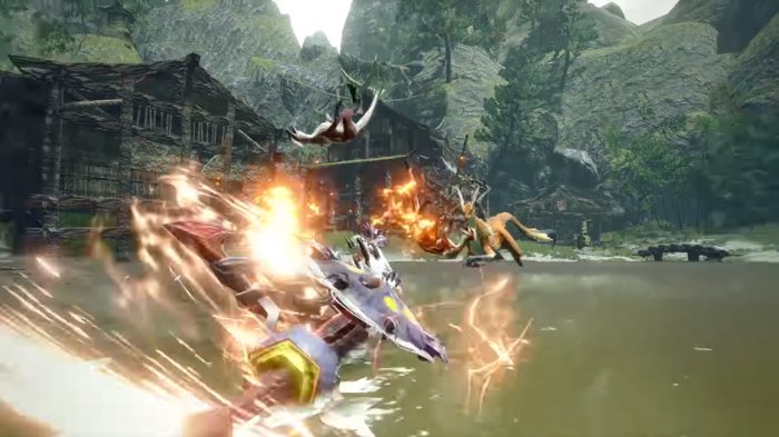 다음은 편의도 면에서 굉장한 상향을 받은 건랜스입니다. 건랜스의 꽃이라고 할 수 있는 '용격포'는 모으기 단계에서 가드 능력을 받았습니다. 영상에선 용격포 도중 아오아시라의 공격에도 밀려나거나 쓰러지지 않고 포격을 사용하는 모습을 볼 수 있습니다.
