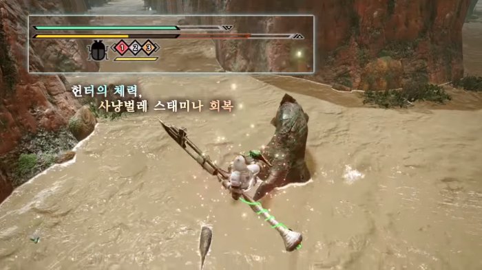 체험판 등장 시점에선 뛰어난 편의성과 높은 파괴력을 지닌 만능 무기로 각광받고 있습니다. 연주 과정이 크게 간소화 됐으며, 타격 무기의 장점인 기절치, 다양한 모션과 높은 배율 덕분에 벌레 철사 기술 없이도 1인분을 하는 무기가 됐죠. 만약 체험판을 즐길 예정이라면 가장 먼저 수렵피리를 해볼 것을 권장합니다.