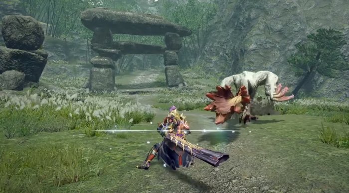 랜스 영상에 이어 라이트보우건 영상에도 반가운 얼굴이 등장했습니다. 몬스터 헌터 라이즈의 간판 몬스터 '마가이마가도' 소개 영상에서 그냥 시체로 나왔던 '토비카가치'입니다. 물론 이번에도 샌드백 역할로 등장했지만, 그래도 활발히 뛰어다니는 모습을 보니 흐뭇한 기분이 들었네요.