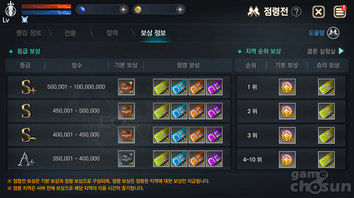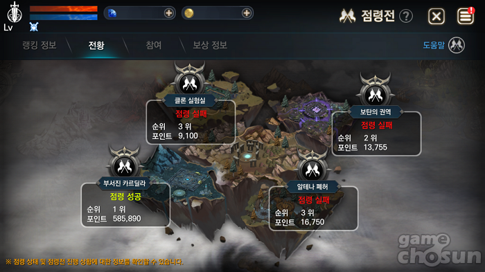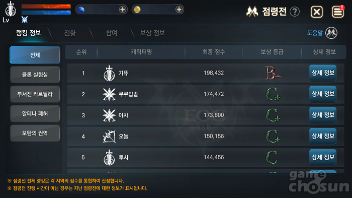 점령전 랭킹 정보도 확인할 수 있다. = 게임조선 촬영