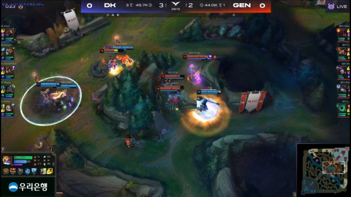 라이프의 아쉬운 점멸 위치, 칸의 놀라운 생존력으로 승부가 결정된 전투 = LCK 스프링 공식 채널 갈무리