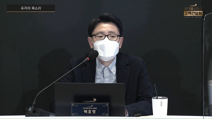 모든 질문을 마친 뒤 왕토 유저 대표는 "6월까지 해주시겠다고 한 내용이 너무나도 많다. 힘써 줄 180명의 개발진의 노고에 미리 감사를 드리며 단순히 메이플스토리 측에서 발표하는 쇼케이스가 아닌 유저와 소통하는 간담회가 되어 감사하다"라고 말했다.