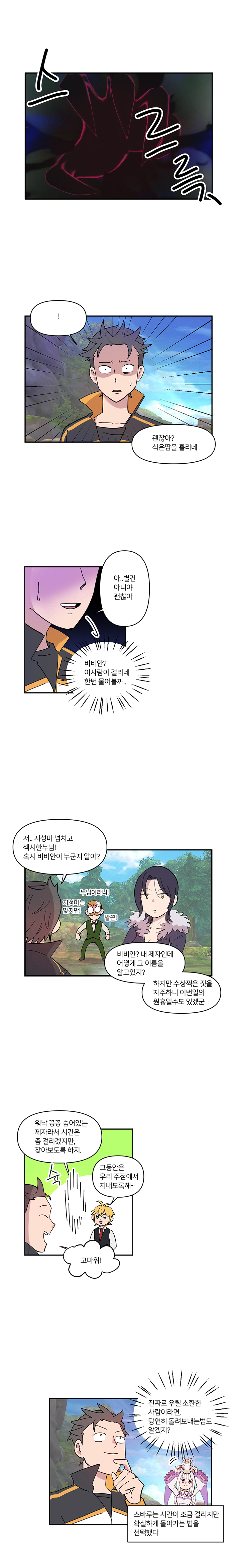 '리제로 콜라보 망상해보는 만화' 하(1)편은 지난 3월 25일 업데이트 된 '[7대죄]x[Re:제로]를 조명한 웹툰으로 일곱개의대죄에서 세계에 떨어진 'Re:제로' 상편에 이어진 내용을 담고 있다. 지난주 진짜 흑막 비비안을 찾았지만 선택을 잘못해 사망한 스바루가 사망회귀하게 된 것.