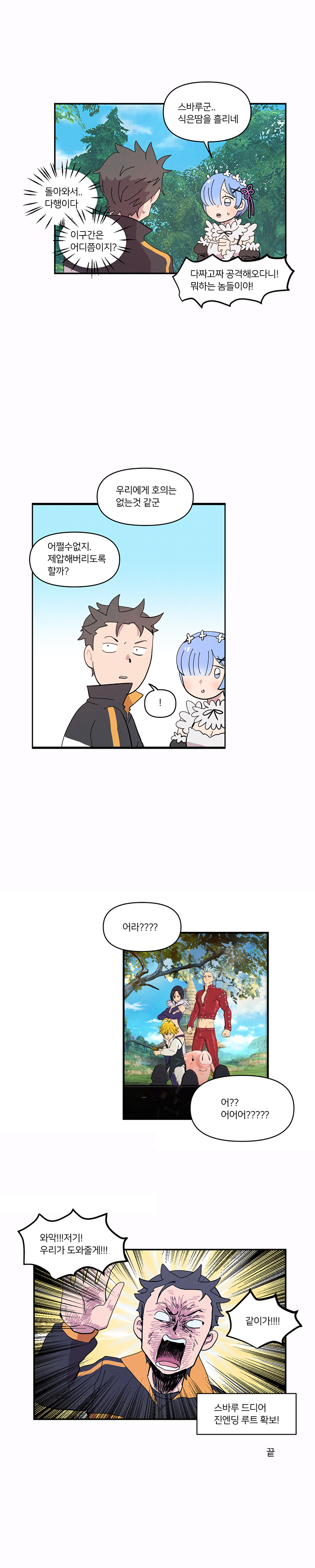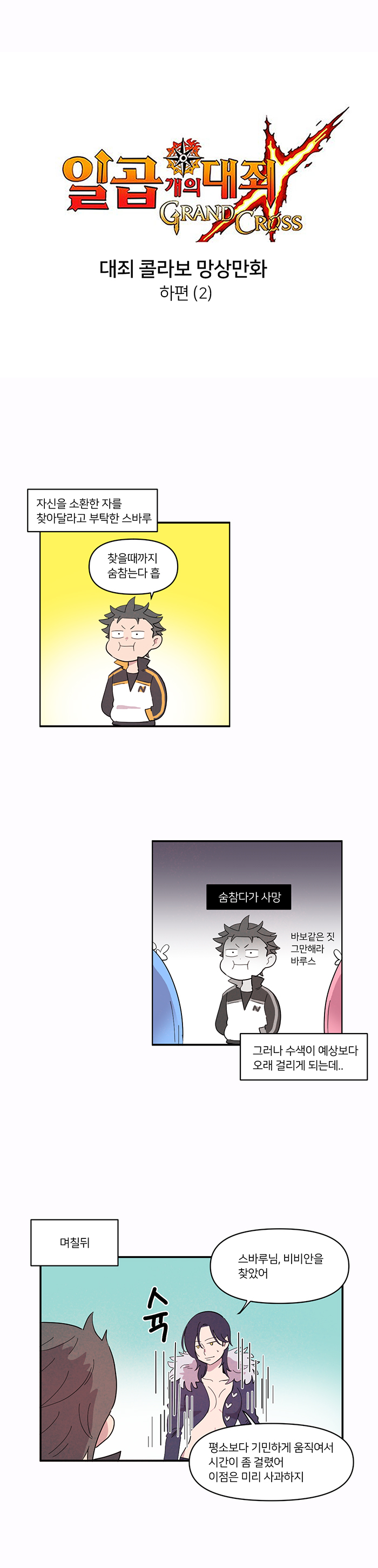 넷마블의 모바일RPG '일곱 개의 대죄 : 그랜드 크로스(이하 일곱개의대죄)'의 신규 웹툰 '리제로 콜라보 망상해보는 만화' 하(2)편이 공개됐다.