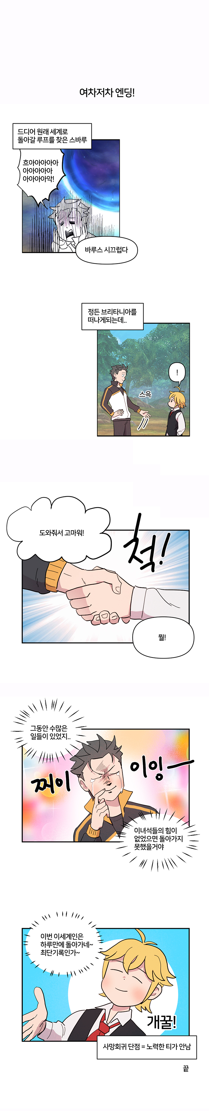 기본적으로 스바루의 사망회귀 능력을 통해 잘못된 선택을 했을 때마다 되돌렸기 때문에 사건은 잘 마무리되고 스바루 일행도 다시 RE:제로의 세계로 돌아가게 됐다는 것이 골자. 스바루는 실패할 때마다 사망을 통해 일을 바로잡았기 때문에 많은 고생을 했지만 이를 모르는 멜리오다스는 단 하루 만에 쉽게 해결된 것으로 착각해 웃음을 자아낸다.