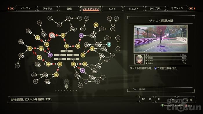 브레인 맵은 일종의 스킬트리로 '레벨업으로 획득한 포인트'를 할당해 능력을 확장시키는 개념이다. 단순 능력치 상승 외에도 공중 2단 점프처럼 다양한 배틀 액션도 있어 육성 방향성에 자신만의 차별성을 만들어낼 수 있다. 마치 브레인스토밍처럼 퍼져나가는 형태로 구상돼 있어 확장의 재미도 있어 보였다.