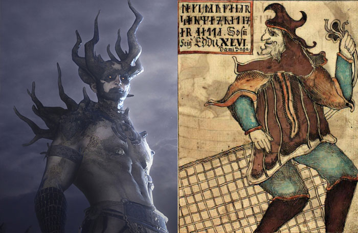 오딘: 발할라 라이징에서 악역을 담당하게 되는 '로키'의 경우에도 중세부터 전해져 내려오는 삽화의 특징을 잘 살렸다. 에다에 실린 삽화에서 로키는 광대모자를 쓰고 있는데, 모자의 뾰족한 부분을 살려, 사악함이 드러나도록 재해석했다.