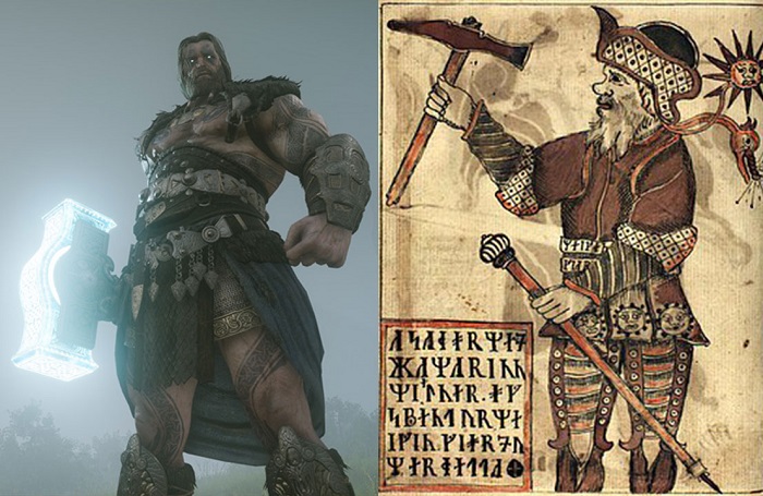 북유럽 신화에서는 역시 '토르'를 빼놓을 수 없다. 토르는 망치(묠니르)를 들고 있는 것이 특징인데 오딘: 발할라 라이징에서도 묠니르를 든 모습으로 등장할 것으로 보인다. 또한 토르는 천둥과 번개의 신이기도 하므로, 망치에 번개의 힘이 깃든 듯한 모습을 담았다.