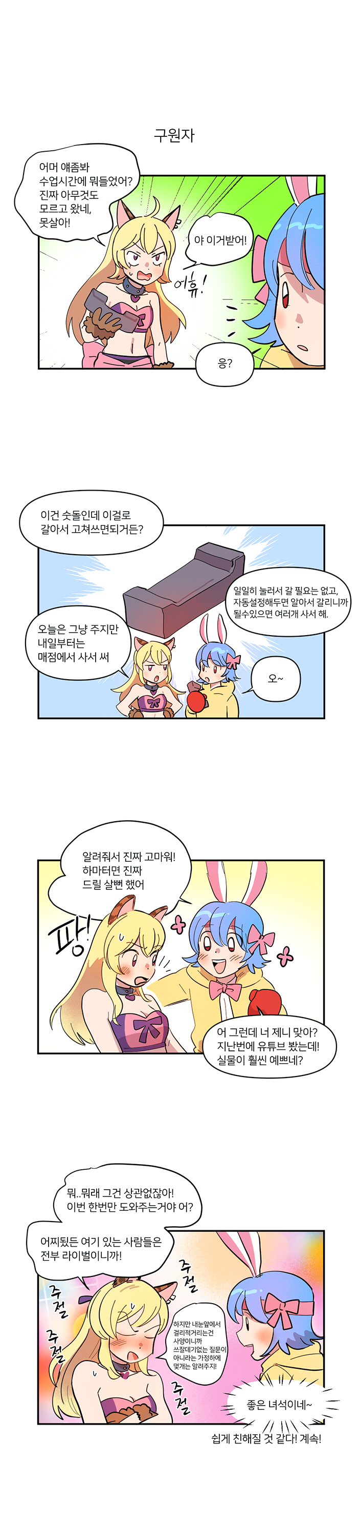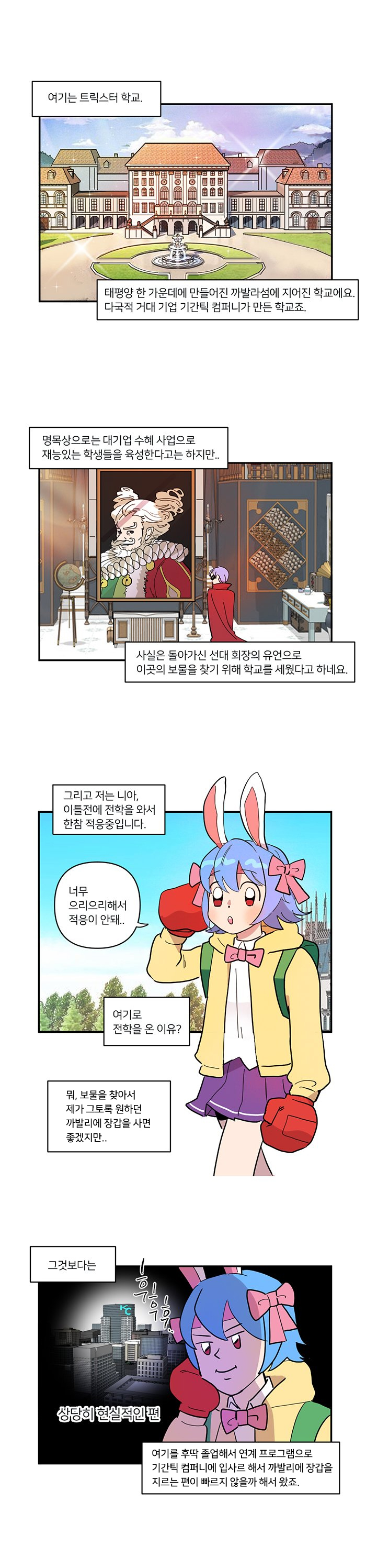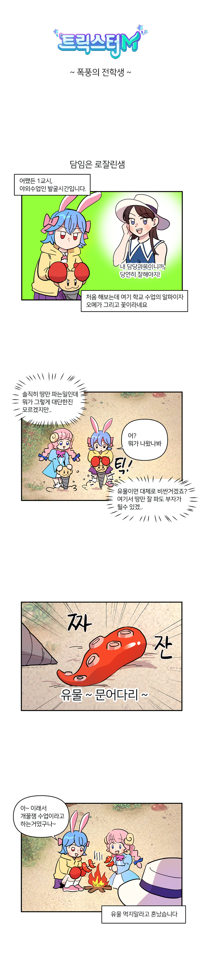 게임조선을 통해 연재하고 있는 국도 작가는 독특한 개그센스와 플레이했던 게임 경험을 기반으로 그림을 그려내고 있다. 이번 트릭스터M 학교생활은 엔씨소프트의 신작 트릭스터M의 내용을 학교생활로 그려낸 개그 웹툰이다.