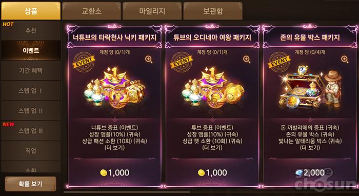 이번에 추가된 패키지는 상점 내 상품 이벤트 탭에서 각각 1회씩 구매할 수 있다.