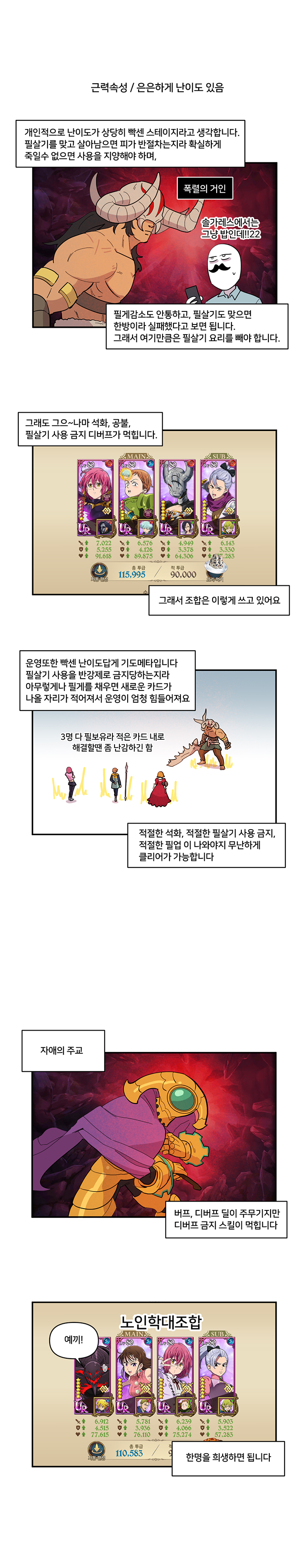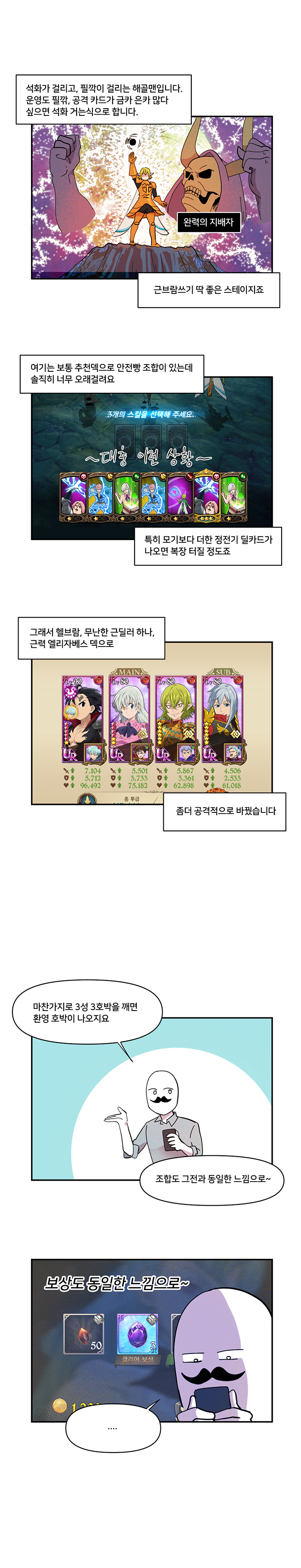 '내 맘대로 수련굴덱' 편은 일곱개의대죄 '수련굴'을 주제로 한 작품. 수련굴은 난도가 크게 높지 않은 콘텐츠임에도 장비를 UR 장비로 업그레이드할 수 있는 장비 각인석을 얻을 수 있어 꾸준히 클리어하는 것이 중요한 던전이다.