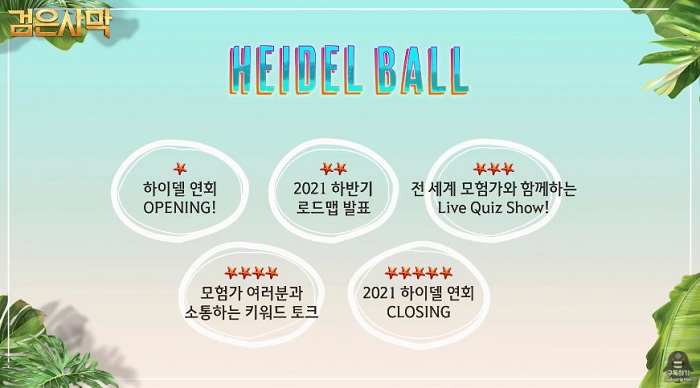 '2021 하이델 연회'는 검은사막 이용자와 행사 시청자의 기대에 부응하듯 역시나 많은 볼거리와 즐길거리로 풍성하게 꾸며졌다. 행사 도중에는 깜짝 인게임 아이템이 주어지기도 했으며, 역대급 보상으로 구성된 쿠폰 번호가 공개되는 등 한 순간도 눈을 뗄 수가 없었다.
