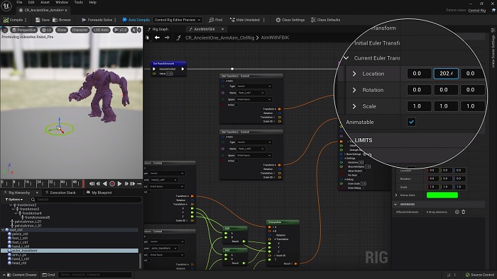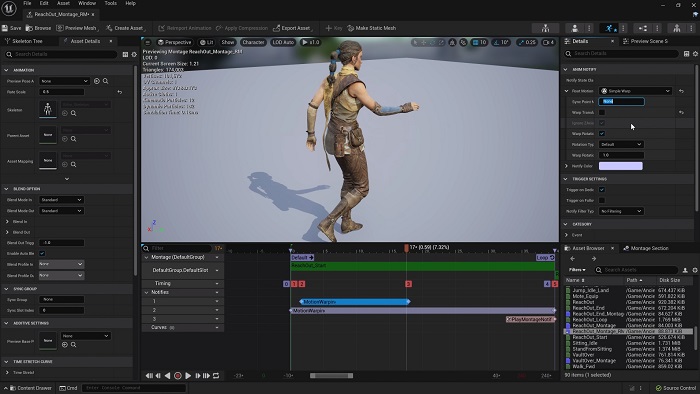Q. 하나의 애니메이션을 다양한 상호작용에 응용할 수 있는 애니메이션 모션 워핑 기능을 선보였는데, 이번 얼리 액세스 버전에서 그 조건을 어떻게, 어느 정도까지 설정할 수 있나?
