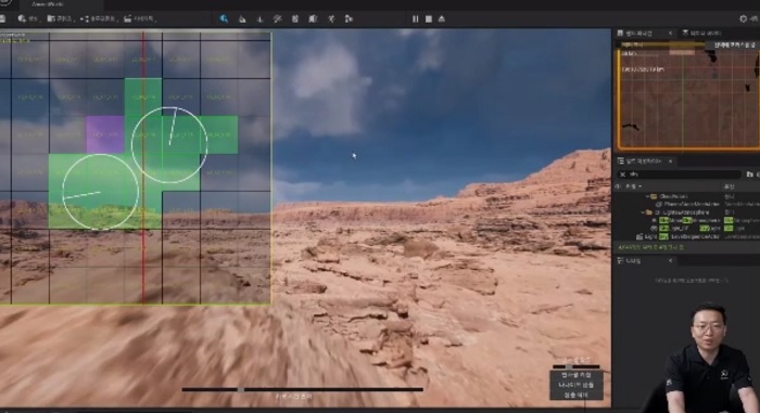 월드 파티션에 대해서도 소개했다. 셀 단위로 자동으로 로딩해 수작업없이 자동으로 나눠주기 때문에 실시간으로 확인 가능하므로 개발 시간을 단축할 수 있다는 점을 강조했다.