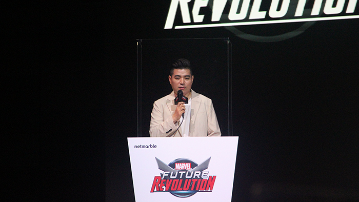 먼저 권영식 대표는 "오늘 소개해드릴 게임은 넷마블이 마블과 긴밀한 협업을 통해 마블 IP 최초의 모바일 오픈월드 RPG가 되겠다. 이미 마블 퓨처파이트를 만들었던 노하우를 살려 리니지2 레볼루션과 블레이드 앤 소울 레볼루션처럼 모바일 최고 수준의 그래픽과 한 판 한 판이 재미있는 콘텐츠를 만들어 글로벌 유저들에게 이 게임의 재미를 선사하겠다"라며 환영사를 전했다.