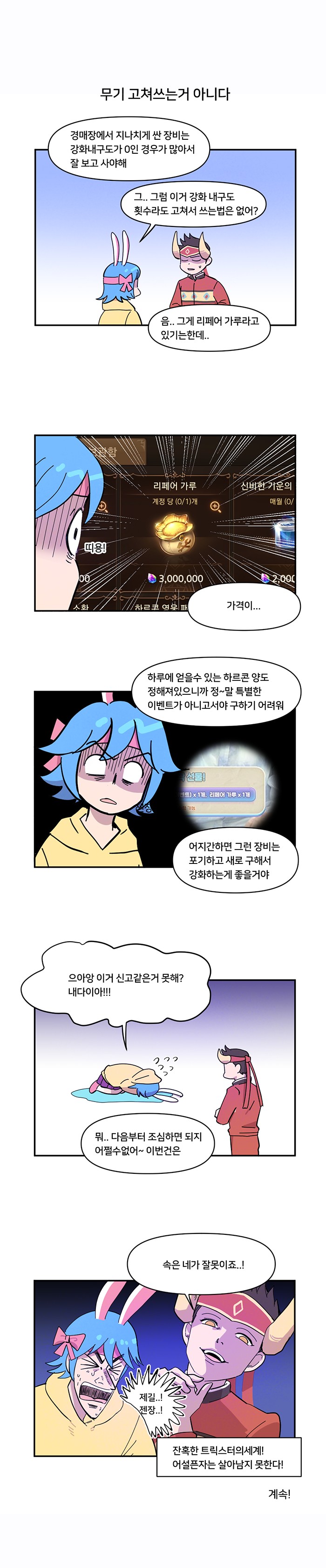 게임조선은 엔씨소프트가 서비스하는 MMORPG 트릭스터M을 소재로 한 자체 제작 웹툰 트릭스터M 학교생활 5화 '경매장에서 쓰레기 산 썰푼다'를 공개했다.