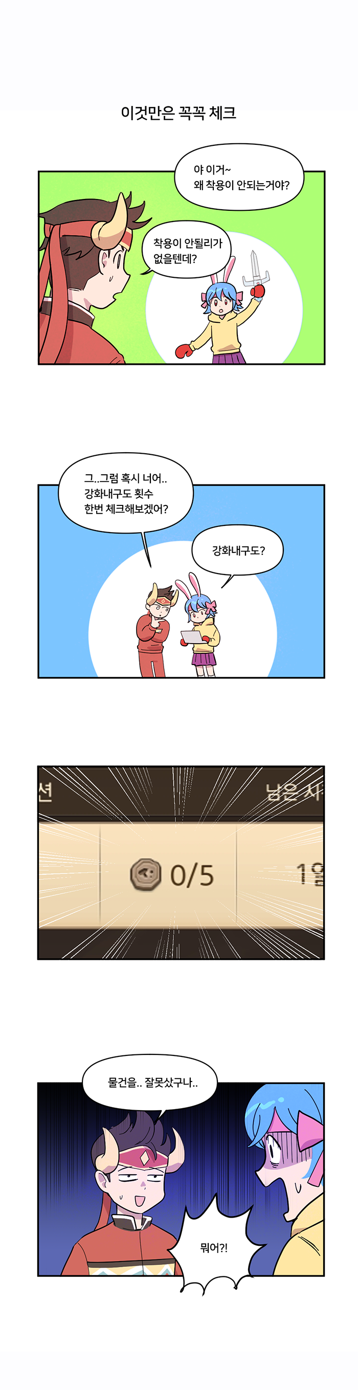 이번 5화에서는 트릭스터M 내 경매장에서 실수할 수 있는 '강화내구도'와 관련된 에피소드를 다뤘다. 트릭스터M 내에서는 장비의 강화 내구도가 다하면 장착하거나 추가 강화를 할 수 없어 '아카데미' 용도로만 사용하게 된다. 이러한 아이템은 리스트 내에서 강화 내구도가 다했다는 것이 표기돼 있지만, 초보의 경우 강화내구도에 대해 잘 모르거나 강화내구도가 다해 아카데미 용으로 저렴하게 내놓은 아이템을 착용하기 위해 구매하는 실수가 발생할 수 있다.