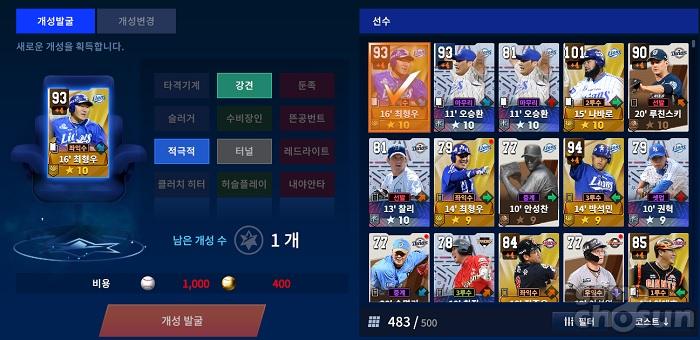 개성 발굴은 새로운 1개의 개성을 획득할 수 있는 기능으로, 모든 카드에 사용 가능하다. 추가로 획득할 수 있는 개성 수는 1개로 모든 카드에 동일하며 개성 발굴 시 1,000 위닝볼과 400 골든볼이 필요하다.