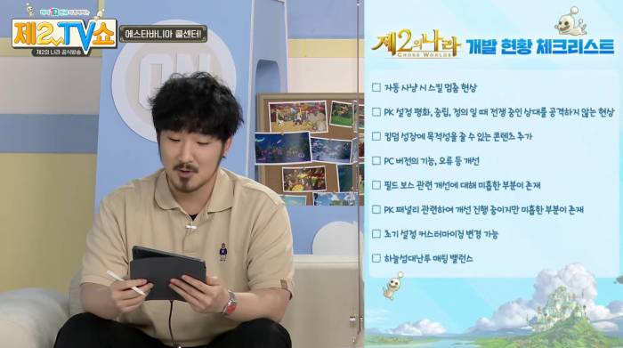 첫 번째 코너는 유저들의 답답함을 풀어주는 '에스타바니아 콜센터'였다. 우선 선바는 지난 방송과 제보를 통해 개발 현황을 체크 리스트로 작성해 박윤모 부장과 검토를 진행했다. 이하는 선바가 진행한 검토 내용이다.