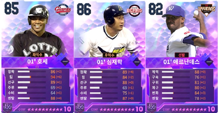 이외에도 신규 EX등급 선수도 3명이 추가됐는데, 롯데의 '호세'와 두산의 '심재학', 그리고 SK의 '에르난데스'가 그 주인공이다. 01' 선수풀이 추가된 만큼 2001년 신규 연감도 등록 가능하다.