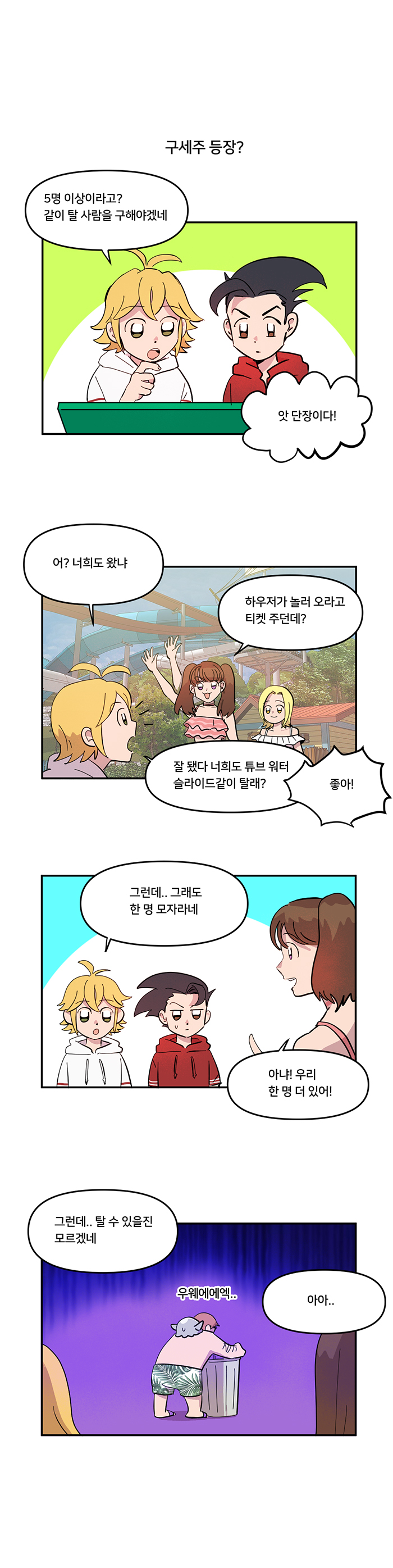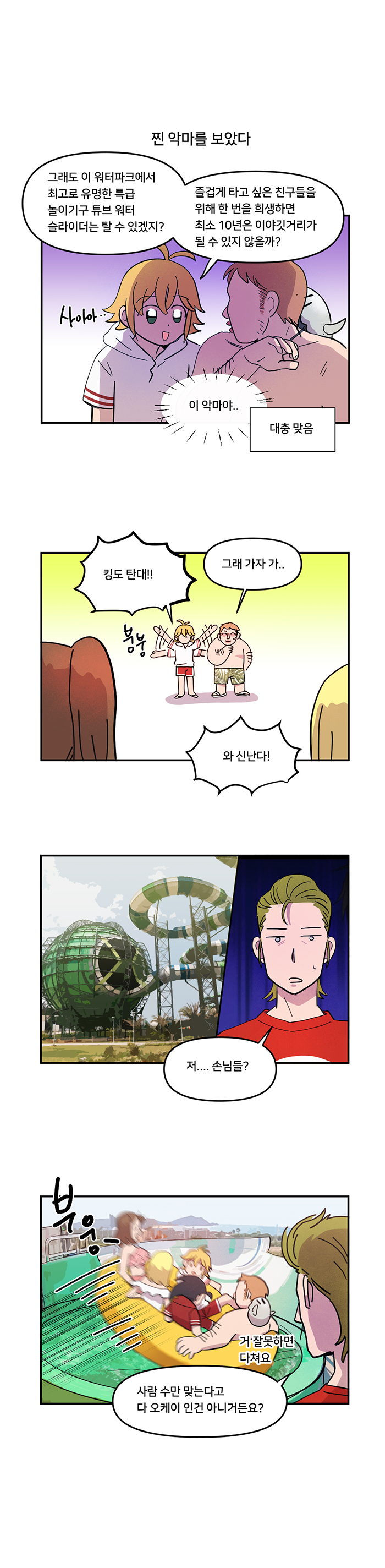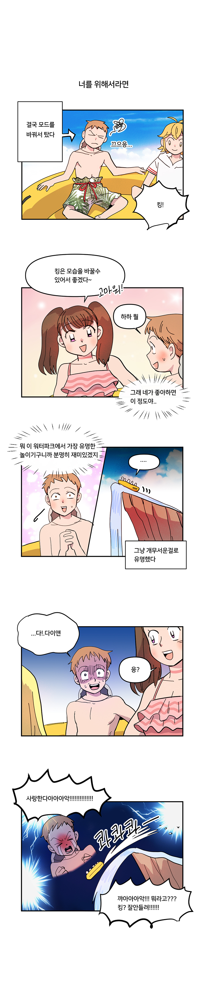 마지막 코스는 최소 5명이 필요한 대형 튜브 워터 슬라이드. 인원 부족으로 곤란하던 때 하우저의 초대를 받아 놀러온 다이앤 일행을 만나며 문제는 해결된다. 새로 등장한 다이앤과 킹의 은근한 관계와 수영복을 잃어버리는 애피소드는 자연스레 웃음을 자아낸다.