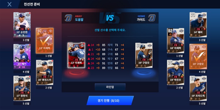 친선전은 자신의 구단과 상대방 구단의 선발 라인업을 지정해서 경기를 치를 수 있으며 경기 전 상대방 구단과의 라인업 전력을 비교할 수 있다. 또, 페넌트레이스 콘텐츠와 동일하게 경기중계와 하이라이트, 스코어보드 등 3가지 모드를 지원한다.