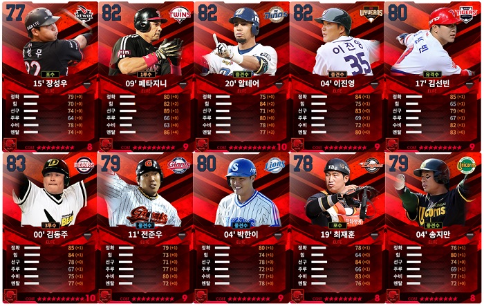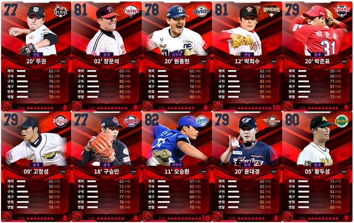 신규 엘리트 등급 선수의 대거 등장도 많은 이용자의 관심을 모으고 있는 것 중 하나다. 각 구단 별 엘리트 등급 타자 1명과 투수 1명, 총 2명 씩 추가됐다. 엘리트 등급 선수 카드는 모든 연도의 팀컬러 효과를 적용받을 수 있을 뿐만 아니라 장비 5개 슬롯 중 1개는 2배의 효과가 적용된다.
