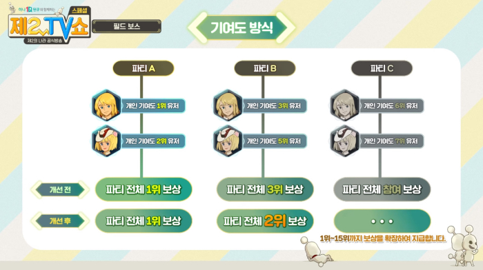 필드 보스는 기여도 부분이 개선된다. 기존 기여도는 개인 기여도 최상위 유저가 한 파티에 있다면 다른 파티가 상위 기여도 보상을 얻지 못하는 문제점이 있었다. 이제는 파티를 기준으로 기여도 순위가 정해지며, 기여도 보상은 최대 15위까지 늘어난다. 유저는 순위 보상과 참여 보상을 모아 에스타바니아의 장비 제작 NPC '툰바'에게 장신구를 제작할 수 있다.