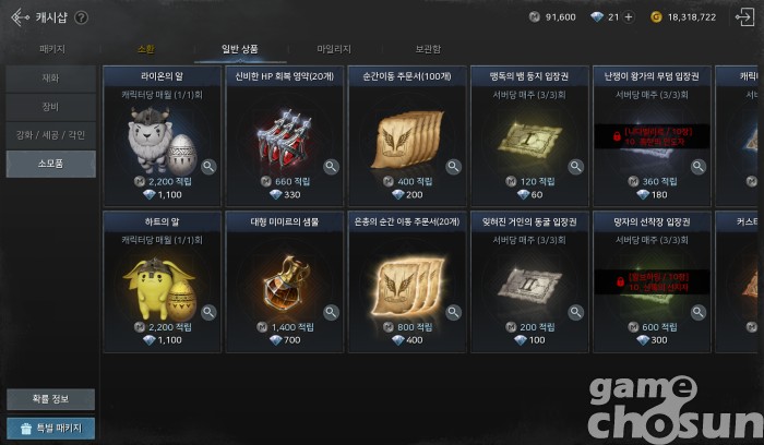 다이아로 판매하는 상품이지만 구매 시 큰 도움이 되는 아이템도 존재한다. 핵심적으로 소개할만한 상품으로는 유일 등급 완장, 호각, 문장 상품과 펫 상품, 파티 던전 입장권 등이 있다.