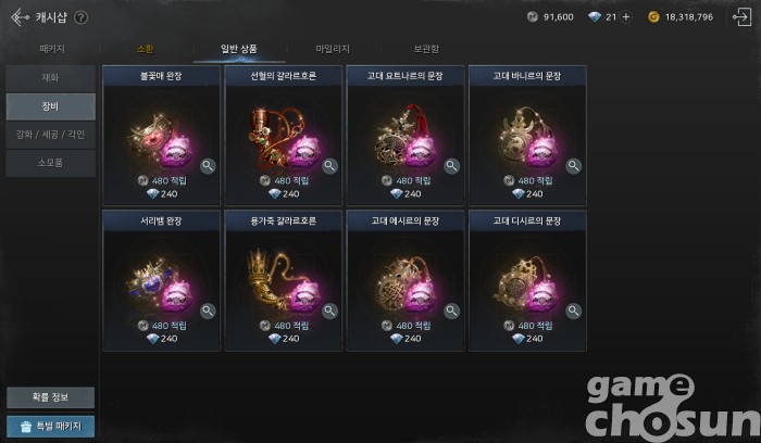 황금 각인 도장도 필히 구매해야 하는 상품이며 이를 통해서 각인의 단계를 점차 개방해나가면서 캐릭터의 능력치를 향상시킬 수 있다.