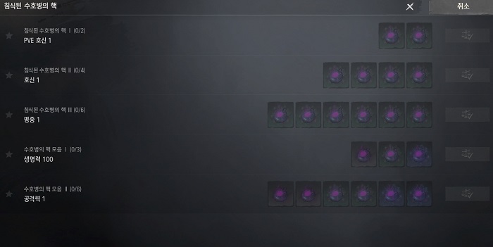추가로 일정 확률로 주어지는 수호병의 핵은 장비도감에 등록해 추가적인 능력치를 부여받을 수 있을 뿐만 아니라, 분해를 통해서 수호병의 증표를 얻는 것도 가능하다.