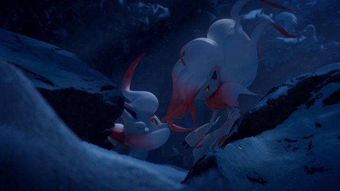 21일 공개된 영상에선 연구원이 다양한 포켓몬을 조사하던 가운데 설산에서 조로아와 조로아크를 발견하는 과정을 확인할 수 있습니다. 두 포켓몬의 타입은 노멀/고스트로 모든 포켓몬 중 유일한 타입 조합을 가지고 있습니다. 노멀 타입의 약점인 격투 타입 공격을 고스트 타입으로 무효가 가능하지만, 고스트 타입의 약점인 악타입은 그대로 유지되는 조합입니다.