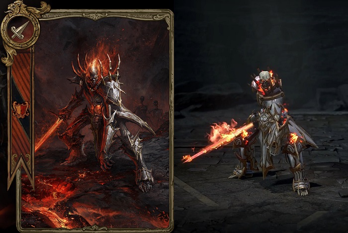 진 데스나이트는 검을 주무기로 장착했을 경우 변신할 수 있으며, '헬파이어'라는 강력한 스킬을 보유하고 있다. 헬파이어는 자신의 주변 다수의 적에게 높은 피해를 주는 기술이다.
