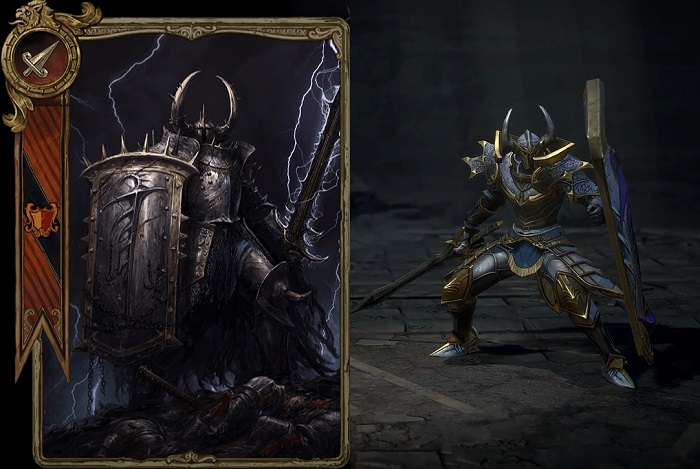 현재 공개된 기사의 주요 기술은 양손검으로 적에게 기절을 부여하는 '쇼크 스턴'과 근거리 공격 후 양손검으로 반격하는 '카운터배리어', 그리고 정신력으로 피해를 흡수하는 '리덕션 아머' 등이 있다.