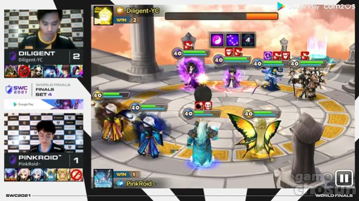 DILIGENT 선수는 최종 우승까지 단 한 번의 우승만이 남은 상태고, PINKROID는 어떻게든 승리를 거머쥐어야 하는 상황까지 왔다. 4세트에서도 DILIGENT 선수는 암 선인으로 선턴을 잡으면서 유리한 고지를 먼저 점했다. 이후 암 오라클로 PINKROID 선수의 몬스터에 기절을 부여하면서 경기를 안정적으로 풀어나갔다. 또한 PINKROID 선수의 핵심 딜러인 물해왕을 완벽하게 봉쇄하면서 필승전략을 선보였다. 결국 DILIGENT 선수는 1세트를 내주기는 했으나, 이후 세트에서는 압도적인 경기력을 뽐내면서 3연승으로 최종 우승을 거뒀다.