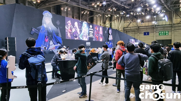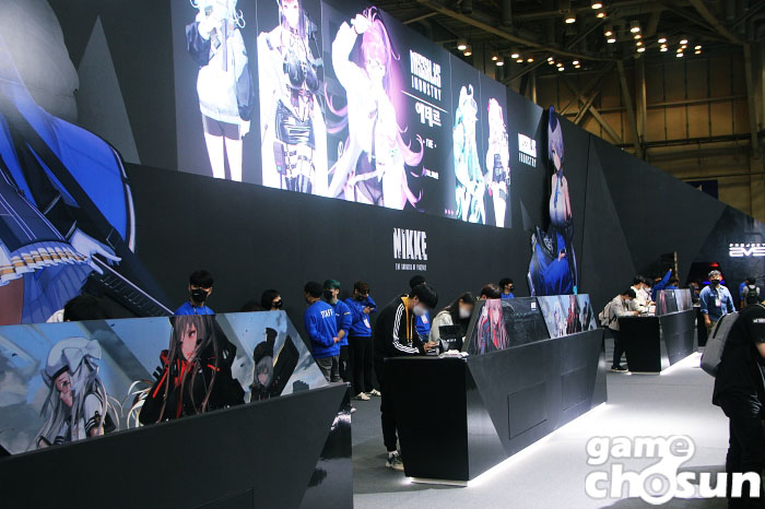 시프트업은 지스타 2021에 참가해 약 70여 대의 모바일 기기로 '니케 : 승리의 여신'을 직접 플레이할 수 있게 하고 있다. 이에 시연해 보기 위한 게이머가 18일부터 줄이 끊이지 않을 정도로 몰려들고 있다.