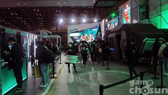 크래프톤은 이번 지스타에 모바일 신작 배틀로얄 게임 '배틀 그라운드 뉴스테이트'를 들고 참가했다. 게임은 하나지만, 딘딘과 스테이씨, 조충현, 테드, 비누 등 유명 연애인과 아이돌, 인플루언서가 크래프톤 부스 행사에 참여해 관람객들에게 뜨거운 호응을 이끌어냈다.