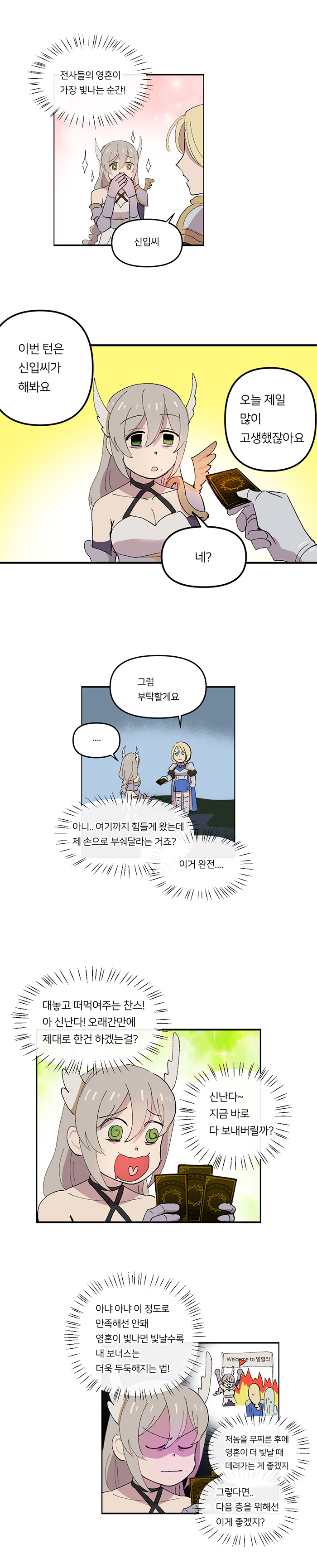 '당신의 빛나는 영혼에 건배'편은 신규 등장한 라그나로크 영웅 '[발할라의 인도자]발키리 메게르다(이하 메게르다)'를 조명하고 있다. 메게르다는 현재 가장 어려운 콘텐츠로 꼽히는 마수전 전용 영웅으로 힐링, 딜링, 버프가 가능한 하이브리드 성능을 가진 것이 특징. 하이브리드 영웅 특성상 주력으로 사용하긴 어렵지만 딜링, 힐링 등 지금까지 미묘하게 부족했던 부분을 채워주는 영웅으로 주목받고 있다.