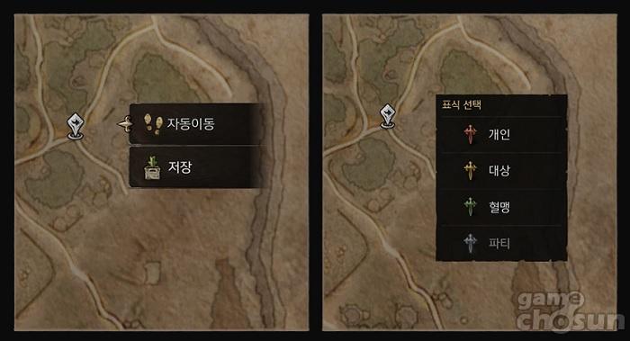 자동 이동 기능 추가와 더불어 표식 생성 방법도 간편해졌다. 표식 생성 시 월드맵의 좌측 표식 항목을 선택 후 원하는 지점을 1초 간 터치 및 클릭하지 않아도 되며, 월드맵 UI에서 특정 지역을 터치만 하더라도 즉시 표식이 생성되도록 했다.
