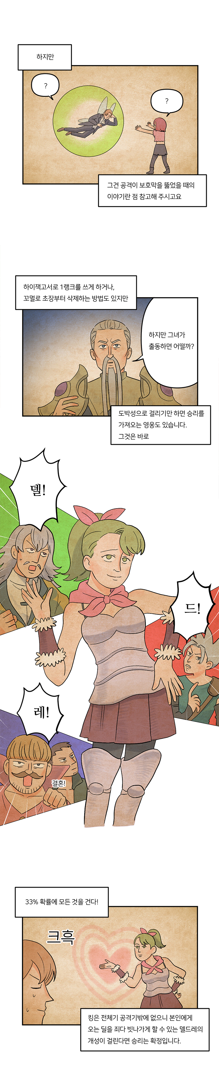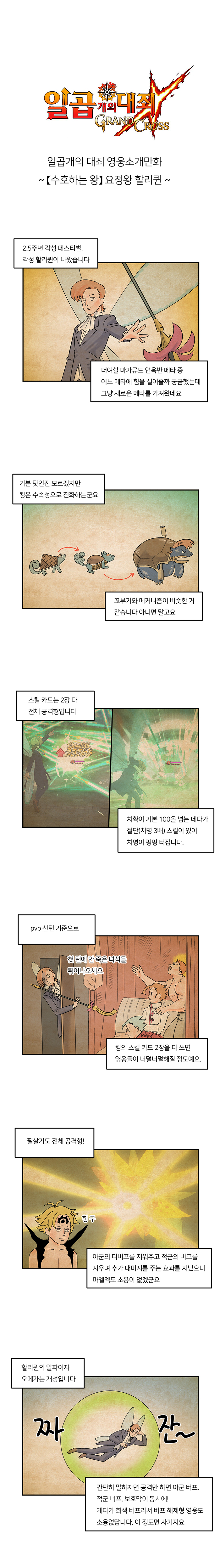 '왕의 귀환'편은 지난 11월 25일 등장한 2.5주년 페스티벌 영웅 '[수호하는 왕]요정왕 할리퀸(이하 각성킹)'을 다룬다. 각성킹은 스킬, 개성, 필살기까지 모두 최고급 성능을 보여 역대 영웅 중 가장 강력하다는 평가가 나오고 있는 영웅. 게다가 단독 개성과 스킬이 강력해 보조 영웅의 시너지가 필요없어 조합을 고민할 필요가 없다는 점도 큰 장점으로 꼽힌다.