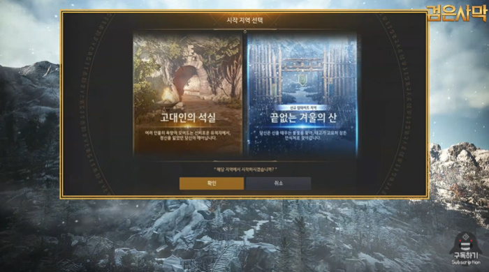 끝없는 겨울의 산은 검은사막을 처음 접하는 1레벨 이용자도 방문할 수 있으며, 해당 지역의 스토리를 경험하는 것이 가능하다. 특히 이제는 캐릭터 생성 시 이용자가 고대의 석실 및 끝없는 겨울의 산 중 시작 지역을 선택하는 것이 가능해진다. 해당 내용에 대해서는 직접 1레벨 캐릭터로 끝없는 겨울의 산에서의 플레이를 시연하면서 이해를 도왔다.